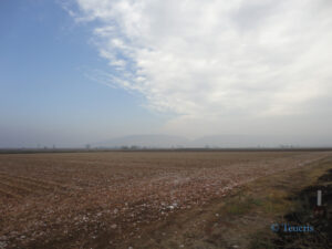 Η φωτογραφία μου από τον Θεσσαλικό κάμπο τον Οκτώβριο του 2013 με τα λευκά σημάδια στην άκρη του δρόμου να είναι βαμβάκια (βαμβακοκαλλιέργεια).