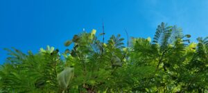 Σήμερα το πρωί περιμένοντας κάπου με το αυτοκίνητό μου κοίταξα ψηλά στον ουρανό. Και είδα αυτό, το οποίο βλέπετε και εσείς στη φωτογραφία. Μία εικόνα μοναδική. Το τέλειο πράσινο, το πεντακάθαρο μπλε. Και πού αυτά; Σε ένα από τα κεντρικότερα σημεία του αστικού ιστού της Πάτρας.