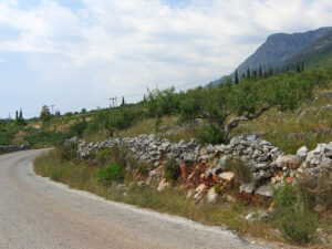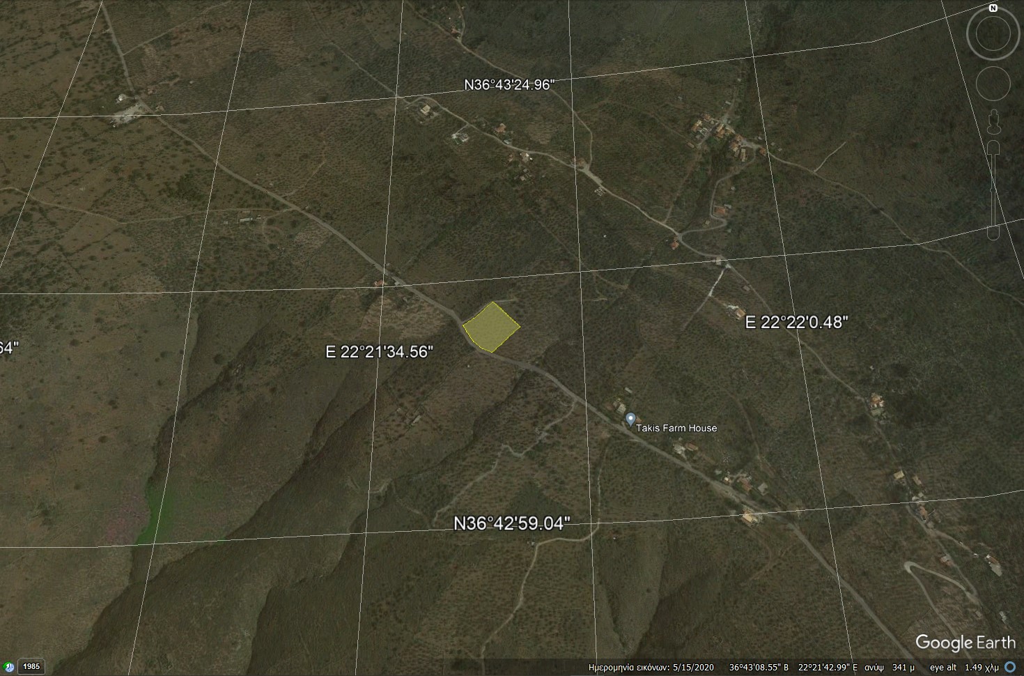 Έκταση εκτός σχεδίου επί της επαρχιακής οδού Καλαμάτας-Αρεόπολης σε απόσταση 3,5 χλμ (πριν) από το Οίτυλο, με πρόσοψη 74 μέτρων επί της ασφάλτινης κεντρικής οδού. Το ακίνητο σχηματίζει γωνία στην πρόσοψή του, ακολουθώντας την επαρχιακή οδό, είναι επικλινές και έχει απεριόριστη και απρόσκοπτη πανοραμική θέα. Διατάσσεται σε επίπεδες πεζούλες (σκαλοπάτια) με την πραγματική του επιφάνεια περίπου στα 7,000 τμ (λόγω της κλίσης). Διατίθεται βεβαίωση από το δασαρχείο και είναι άρτιο και οικοδομήσιμο κατά κανόνα. Τα όριά του είναι καθορισμένα με πετρόχτιστη περίφραξη και είναι εγγεγραμμένο στο κτηματολόγιο.