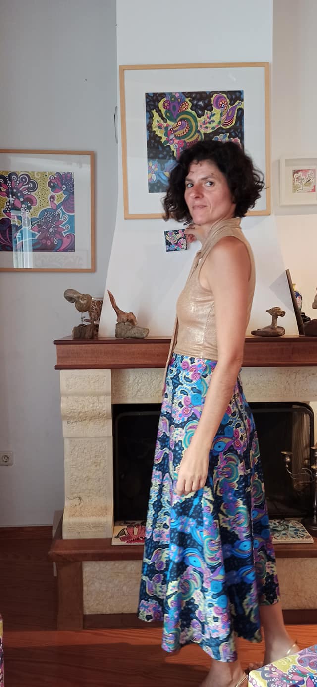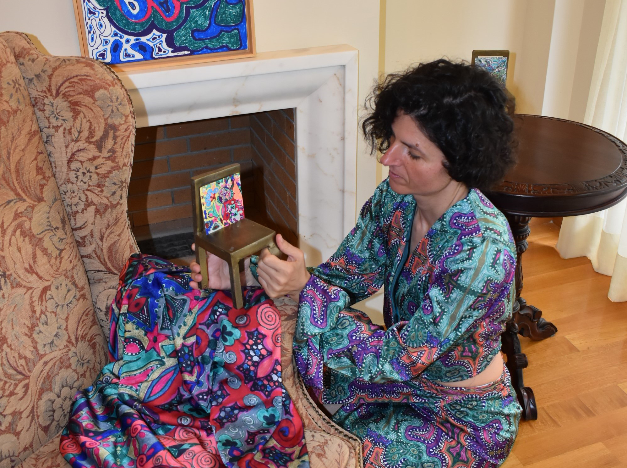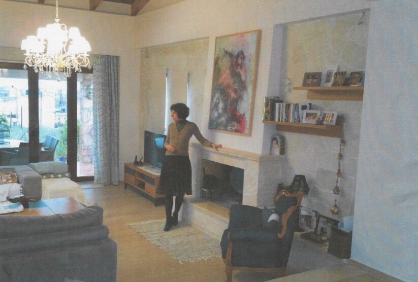 Κάθε χώρος αποκτά τη δική του υφή μέσα από υφάσματα, πίνακες και εικαστικές δημιουργίες — από το ύφασμα ενός καναπέ μέχρι το φόρεμα που φορά η Αθηνά, σύμβολο της αρμονίας ανάμεσα στη δομή και την ομορφιά.