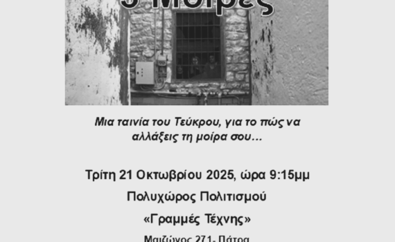 Την Τρίτη (9:15μμ) 21 Οκτωβρίου 2025 στο θέατρο “Γραμμές Τέχνης” στην Πάτρα θα προβληθεί η μεγάλου […]